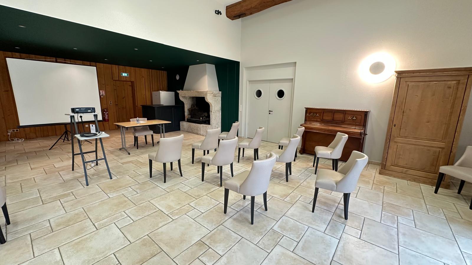 Spacieuse et élégante, cette salle à l’atmosphère raffinée se prête parfaitement à l’accueil de groupes pour des réunions, repas d'affaires ou cocktails. Dotée d’une cheminée qui ajoute une touche chaleureuse et conviviale, elle allie confort et fonctionnalité dans un cadre professionnel soigné. L’équipement complet assure le bon déroulement de vos événements.